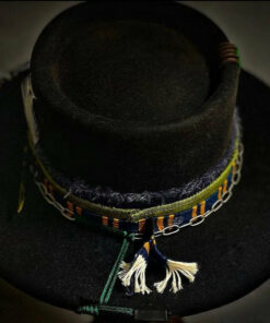 Distressed Fedora Adorned With Scarf Feather And Rope