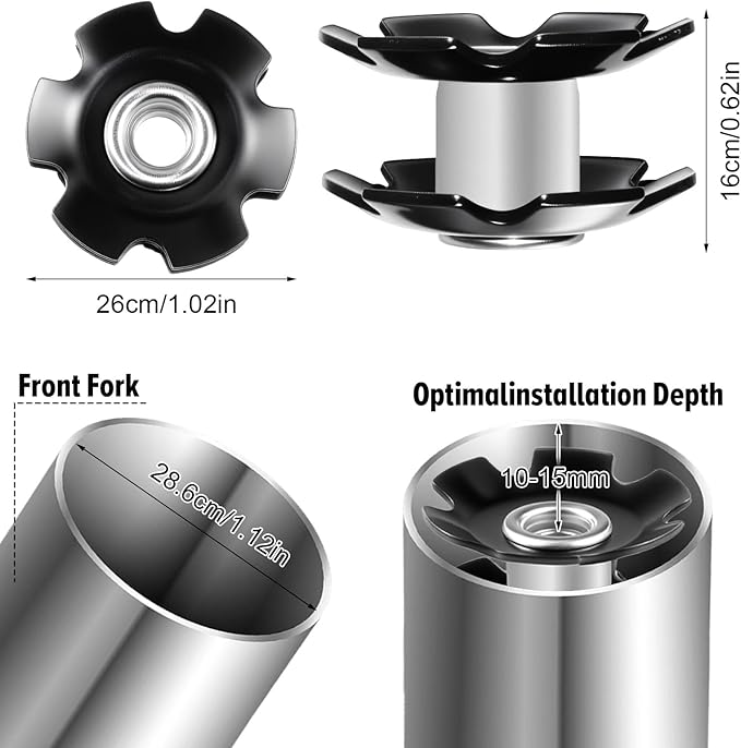 - Universal Compatibility: Our bicycle fork star nuts are compatible with fork valve nuts with a diameter of 1-1/8″ (28.6mm), suitable for most models, such as road and mountain bikes.