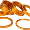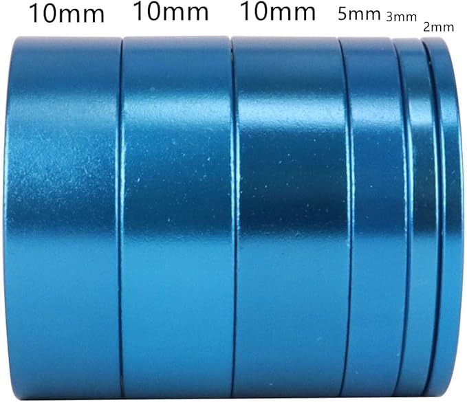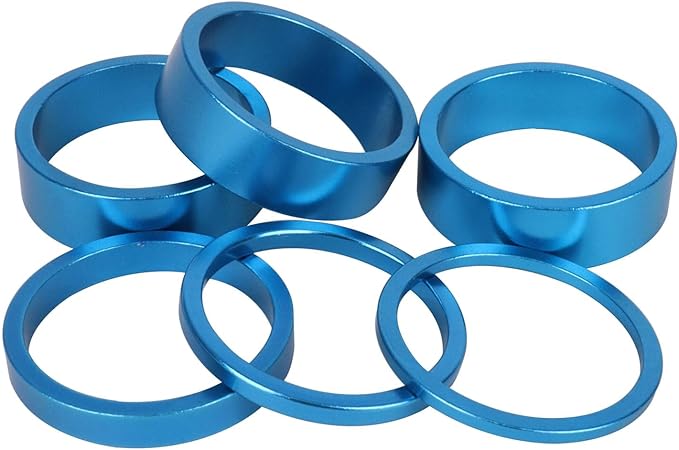 - Variety Pack: This set includes 6 aluminum alloy headset spacers in 2mm x1, 3mm x1, 5mm x1, and 10mm x3 sizes to fit most 1 1/8-inch stems