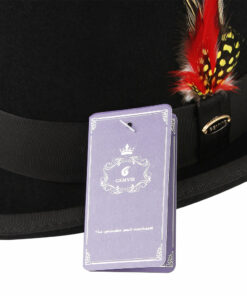 Elevate your ensemble with our exquisite Feather Decorated Black Top Hat. This classic piece features a striking black hue and is adorned with elegant, eye-catching feathers, adding a touch of sophistication and charm. Whether you’re attending a formal event or aiming to make a statement with your everyday look, this top hat is the perfect accessory. The timeless design and meticulous craftsmanship make it a standout choice for any occasion. Embrace tradition with a modern twist and add a dash of elegance to your wardrobe with our Feather Decorated Black Top Hat.