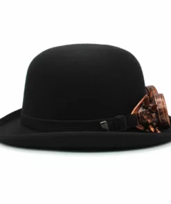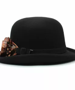 Elevate your style with our distinguished Bowler hat, featuring a unique eyeglass-adorned hatband. This timeless piece is meticulously crafted, boasting a crown height of 4.72 inches and a brim width of 1.97 inches. Whether you’re aiming for a formal or casual look, this Bowler hat is the perfect accessory to add a touch of individuality to your ensemble. The eyeglass-accented hatband adds an intriguing and sophisticated element to this classic accessory, making it a standout choice for any occasion. Make a statement and elevate your wardrobe with our impeccably designed Bowler hat.