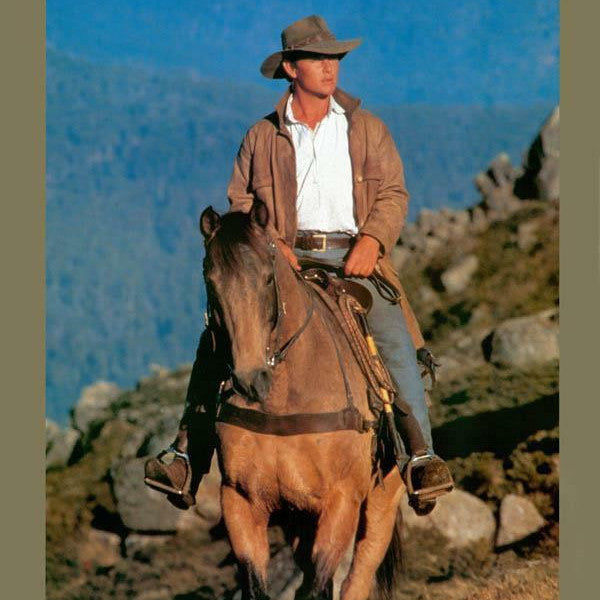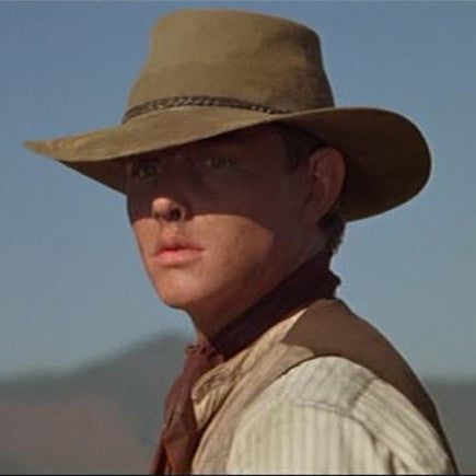 The Snowy River is a pre-creased stockman’s hat from Akubra, a classic Australian outback hat. It has a pinched telescope crown and a brim with rolled sides with front and back turned down. This enduring outback style may be worn over the eyes or well back on the head in typical Australian fashion. The crown is 4 inches high. The brim is 3¼ inches wide, with a raw edge. The pure fur felt is Akubra’s Imperial Quality. The hat is fully lined and has a bonded leather ornamental band. Reeded roan leather sweatband. UPF rating 50+. Made in Australia.