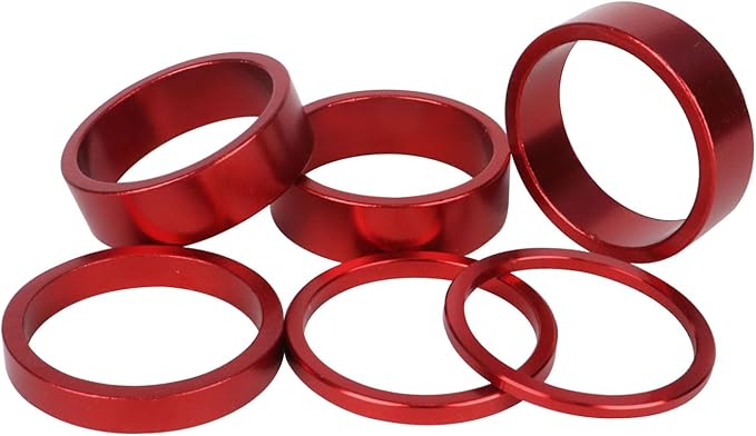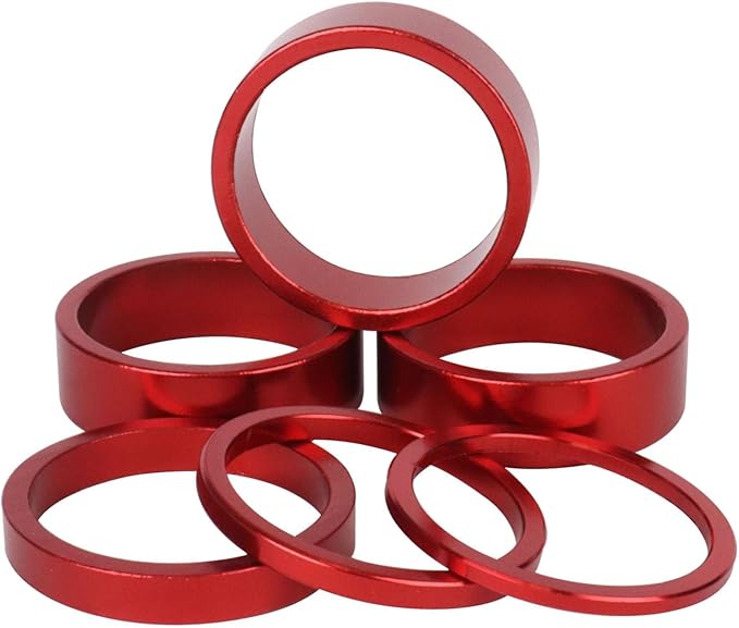 - Variety Pack: This set includes 6 aluminum alloy headset spacers in 2mm x1, 3mm x1, 5mm x1, and 10mm x3 sizes to fit most 1 1/8-inch stems