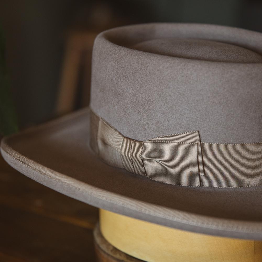 The Rustic Rider Felt Pork Pie Cowboy Hat, a stylish and versatile addition to your wardrobe. Crafted from high-quality felt, this hat offers both comfort and durability, making it perfect for any outdoor adventure or casual outing.