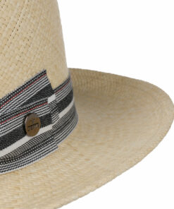 With its trim in tastefully coordinated stripes, this stylish Panama hat  is the perfect accessory for hot summer days. 100% Panama straw gives the hat a high quality and elegant character, and makes it airy, lightweight and comfortable to wear. The wide brim provides a pleasant amount of shade at social events in the open air.
