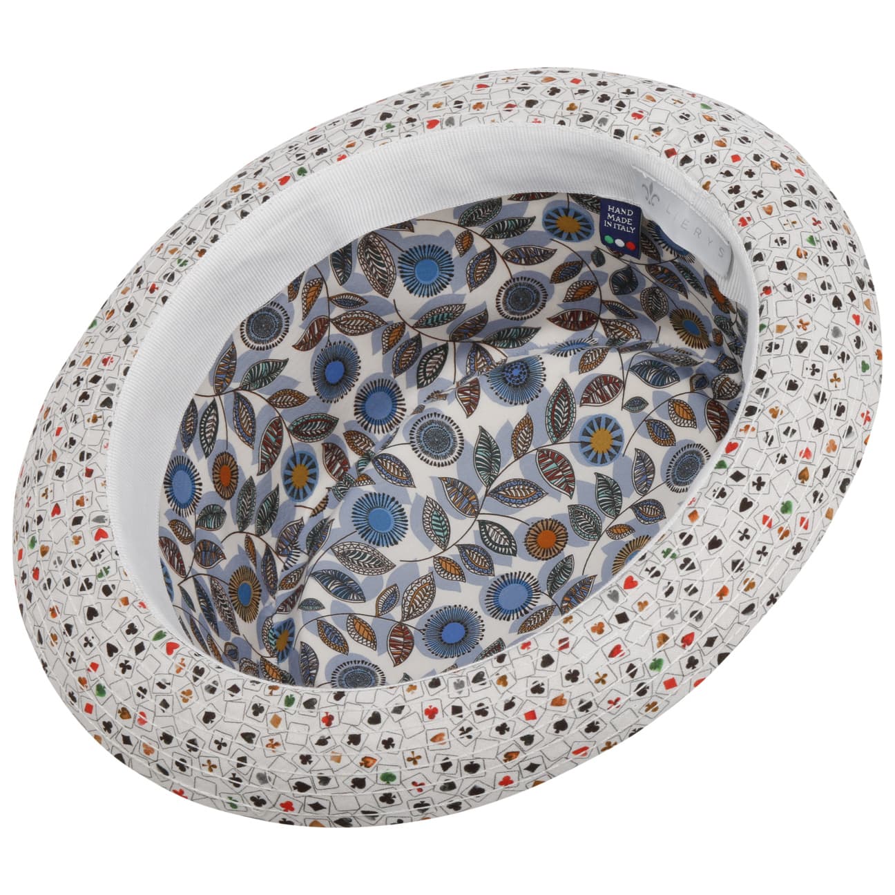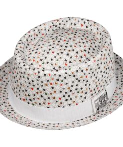Bad luck in the game, good luck in love? Or the other way round? The original pork pie hat simply plays the cards as they come to the table.The cheerful pattern of spades, hearts, clubs and diamonds gives it a trendy look. Its characteristic round shape with the short brim suits casual outfits as well as fashionable jackets and suits.