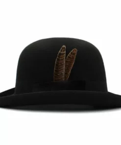 Elevate your style with our exquisite Bowler hat, adorned with a feather-accented hatband. This timeless piece is crafted with precision and boasts a crown height of 4.72 inches, along with a brim width of 1.97 inches. Embrace sophistication and tradition with this classic accessory, perfect for both formal occasions and casual outings. The leather hatband, complemented by delicate feather detailing, adds an extra touch of elegance to this distinguished Bowler hat. Make a statement and elevate your ensemble with our impeccably designed Bowler hat.