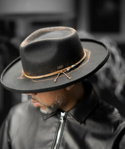 The “Funky Aged Top Hat” is beautifully crafted and exudes a unique charm.