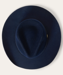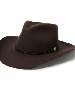 Handcrafted from high quality wool felt for a sturdy finish and unique style. It has a 4 1/4-inch pinch crown, 3 1/4-inch brim, and a three-cord braided leather hatband with buffalo nickel pins.